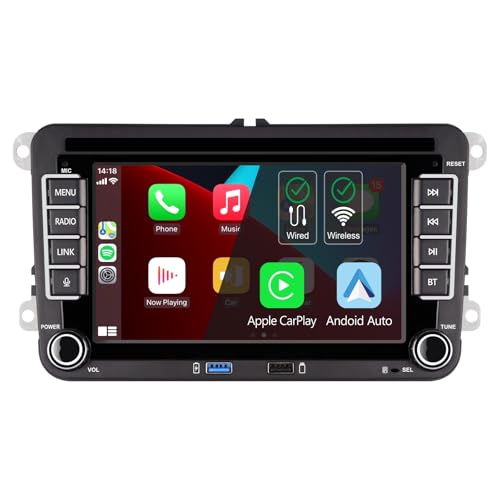 HLLECARMO VW Wireless Carplay Android Autoradio Golf 5 6 Polo Passat Seat Skoda Touran Jetta, 7 inch Touch Screen Bluetooth/FM/AM/RDS DSP Radio/USB/Subw Steering Wheel Control EQ Miracast
