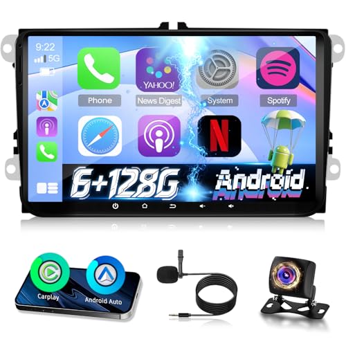 CAMECHO [6+128G 8-Core] Android 15 sans Fil Carplay Autoradio pour VW Golf 5 6 Polo 5 T5 Skoda Passat B6 B7 Seat, DSP Android Auto, 9" Bluetooth 5.0 Radio Auto GPS WiFi FM/RDS Lien Miroir+Mic+CANBUS