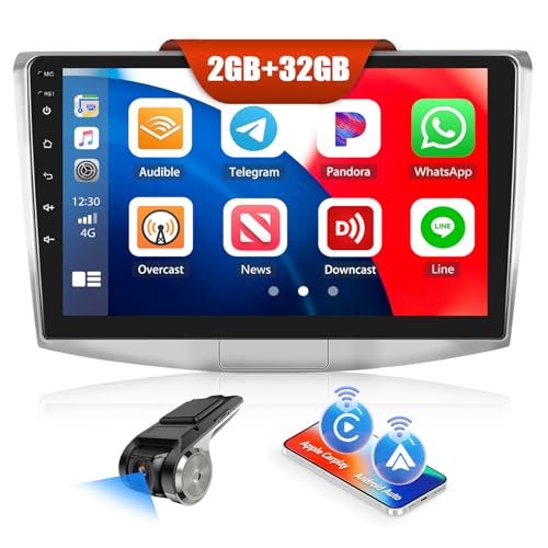 CAMECHO Autoradio sans Fil Android 13 2+64 Go Carplay avec Navi pour VW Passat B6 B7 Golf 5 6 Jetta T5 Polo Touran Caddy Sharan Seat Autoradio 9" Double Din avec Bluetooth WiFi FM Caméra de recul