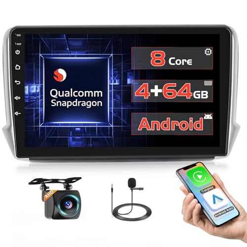 Podofo Autoradio pour Peugeot 208/2008 2012-2018 avec Wireless Carplay Android Auto, Autoradio 9" IPS Touchscreen, 8 Core 2+64G, Bluetooth/WiFi/Mirror Link/GPS/DSP+Caméra arrière
