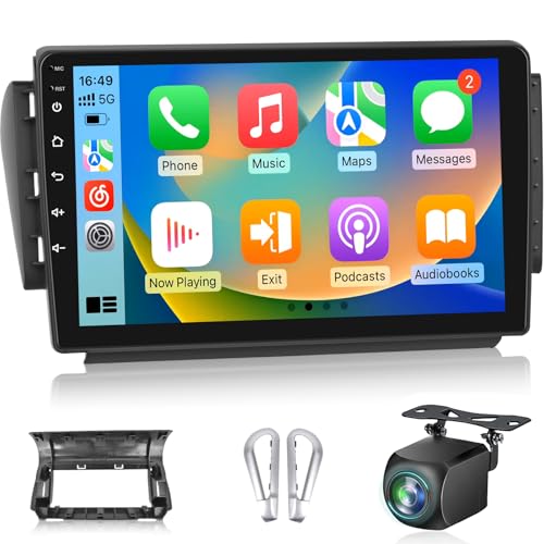 Podofo Autoradio pour Peugeot 208/2008 2012-2018 avec Wireless Carplay Android Auto, Autoradio 9" IPS Touchscreen, 8 Core 2+64G, Bluetooth/WiFi/Mirror Link/GPS/DSP+Caméra arrière