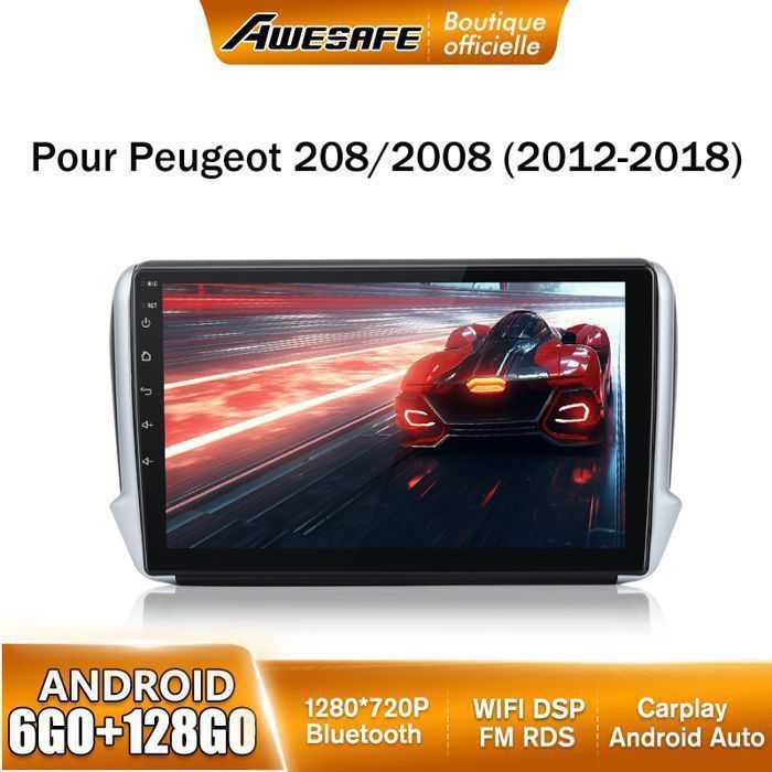AWESAFE Autoradio Android 13 pour 208/2008 (6Go+128Go) 9 Écran Carplay Android Auto GPS Bluetooth WiFi FM RDS SWC