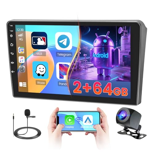 Hodozzy 2GB+64GB Android Autoradio pour Peugeot 407 CC SW 2004-2011 avec sans Fil Carplay Android Auto, 9,7 Pouces Écran Tactile Android Radio 2 Din avec GPS WiFi Bluetooth DSP FM/RDS Radio+ Caméra