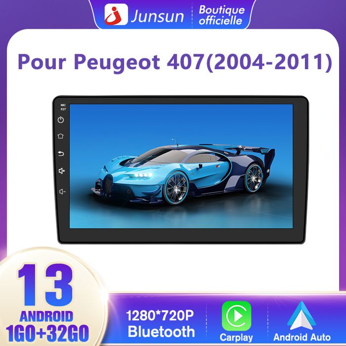 Junsun Autoradio Carplay pour Peugeot 407(2004-2008) 9Android 12 [1Go+32Go] avec GPS Android Auto WiFi DSP FM Commande au Volant