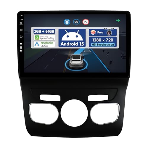 Autoradio pour Citroen C4 2004-2014 Android 15 9 Pouces Écran Tactile avec BT GPS WiFi FM Carpaly Backup Camera Cooling Fan pour, 4 Core 2G+64G