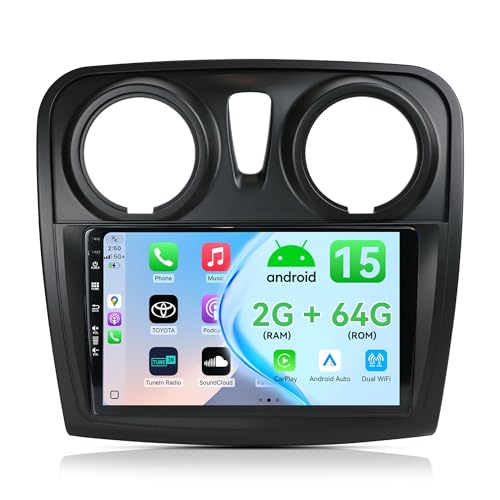 Inefala 2G+64G Android 15 Autoradio pour Dacia Duster Sandero Logan Dokker, avec Wireless Carplay Android Auto 9 Pouces écran Tactile Poste Radio Bluetooth avec GPS WiFi RDS/FM Caméra de Recul & Mic