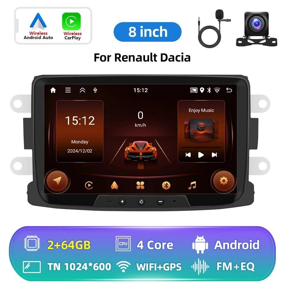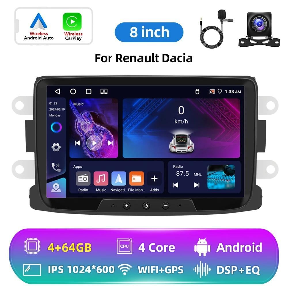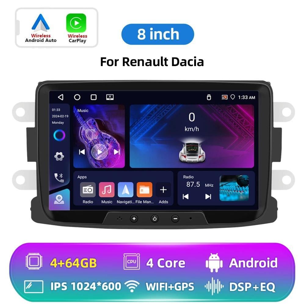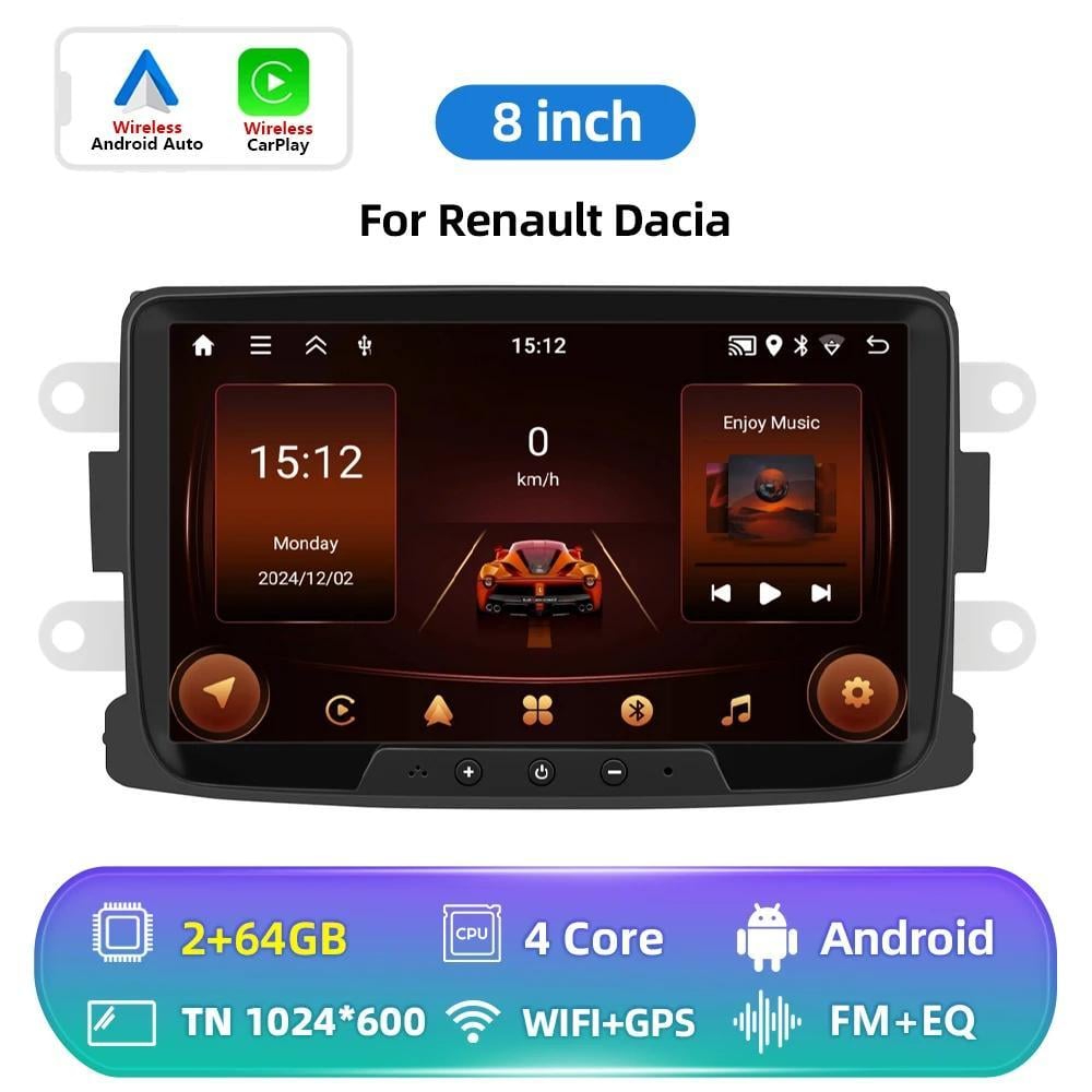 Autoradio pour Renault Dacia Duster Sandero Dokker Logan Lodgy Captur avec Wireless Carplay Android Auto Android Radio Touchscreen HiFi Bluetooth FM/RDS EQ SWC Canbus