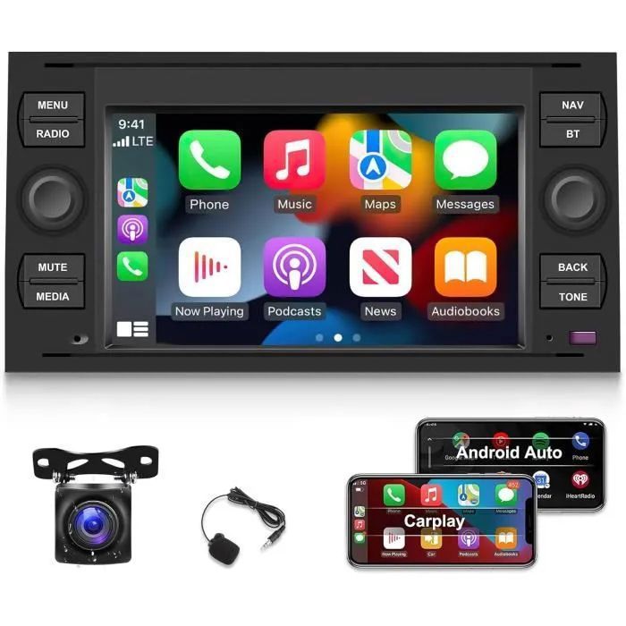 Autoradio Android pour Ford Fiesta Transit Focus Fusion Mondeo Kuga Connect Galaxy C- S- CarPlay et Android Auto sans Fil
