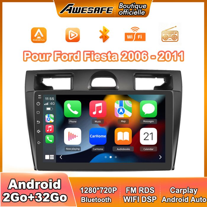 AWESAFE Autoradio Android 13 pour Ford Fiesta (2006-2011) 1Go+32Go avec 9 écran Tactile Carplay Android Auto GPS Bluetooth FM