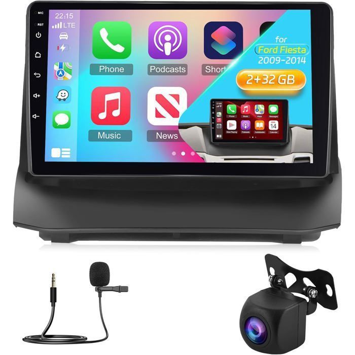 [2+64GB] Android Autoradio pour Ford Fiesta 2009-2014, Autoradio 9 Pouces avec Écran Tactile, CarPlay & Android Auto, WiFi, GPS, Radio FM RDS, Caméra de Recul