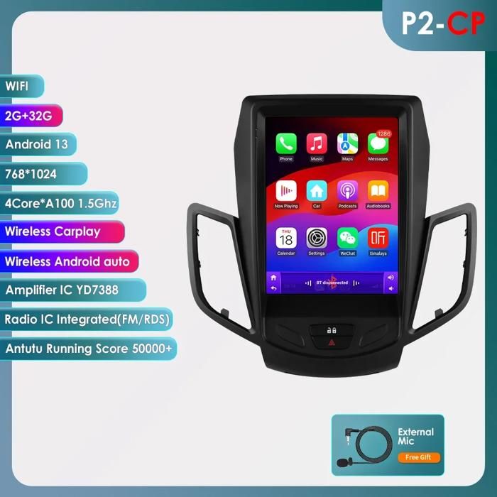 Autoradio pour Ford Fiesta MK6 MK7 2009-2017 Carplay Android Auto Écran Lecteur Multimédia 2din Vidéo 4G WIFI Navigation Stéréo