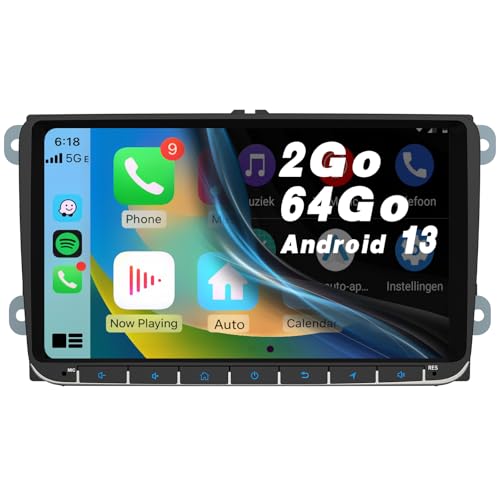 [2+64GB] CAMECHO Android 13 Carplay Android Auto Autoradio pour VW Golf 5 Golf 6 Passat Touran Polo Skoda, 8 Pouces écran Tactile avec Commande au Volant GPS/WiFi/Bluetooth/HiFi/FM/RDS/+AHD Caméra
