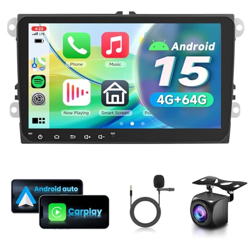 CAMECHO 4+64G Android 15 Autoradio pour VW Golf 5 Polo Skoda avec Carplay Android Auto Bluetooth 5.0,8 Pouces écran Tactile 2 Din avec GPS WiFi DSP FM/RDS SWC et USB