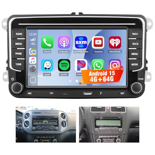 VECHTEL 4G+64G Autoradio pour VW Golf 5 6 Passat Jetta Caddy EOS T5 Tiguan Touran CC Polo avec CarPlay Android Auto sans Fil, Écran Tactile 7'' Android 15 GPS WiFi USB Type-C Bluetooth FM RDS Caméra