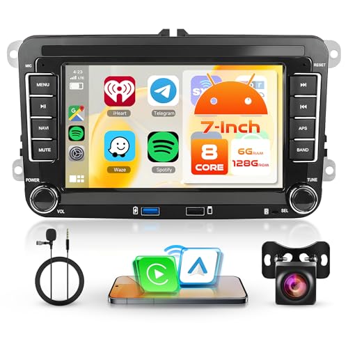 6G+128G 8 Cœurs Autoradio pour VW Golf 5 6 Polo Passat Tiguan Touran Skoda Caddy Seat 7 Pouces Autoradio Carplay sans Fil Android Auto Mirror Link Bluetooth FM/RDS/EQ/DSP WiFi GPS Caméra Recul