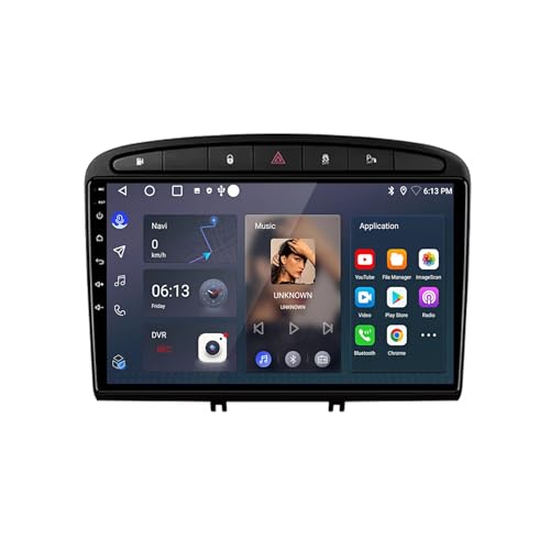 6G+128G 8 Cœurs Rimoody Autoradio pour Peugeot 308 408 2007-2015 9'' écran Tactile Android Stereo Auto avec Carplay Android Auto sans Fil Mirror Link Bluetooth FM/RDS/EQ/DSP WiFi GPS SWC Caméra Recul