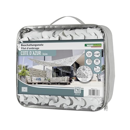 Windhager Réseau d'ombrage Cote D'AZUR - 3 x 4 mètres - Blanc/Gris - Toile ombrage Exterieur, Voile d'ombrage, Toile d'ombrage - Voile ombrage - auvent de terrasse, Balcon et Jardin