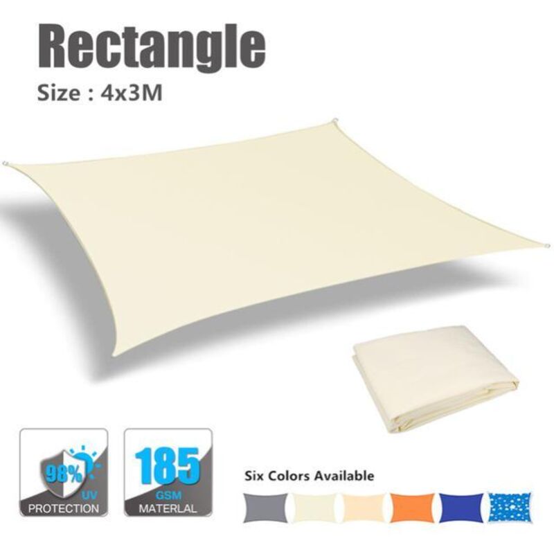 4 X 3M Étanche Soleil Abri Pare-Soleil Protection Voile D'ombrage Auvent Camping Toile D'ombrage Grand Pour Auvent Extérieur Jardin Patio -Beige
