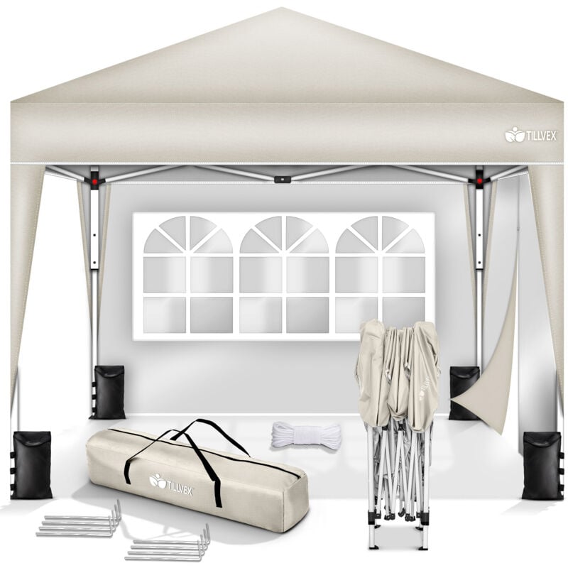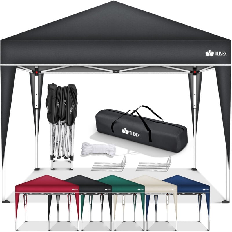 tillvex Tonnelle de Jardin 3 x 3 m Pliable Tente Pliante de Jardin à Hauteur réglable Auvent Pliable pour Camping, Festival, Plage, Jardin Protection