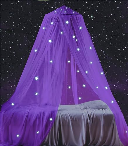 South to East Ciel de Lit avec Étoiles Fluorescentes Phosphorescentes, 230 Moustiquaire pour Bébé, Enfants Filles. Violet Auvent de Lit pour Enfant, Fille ou Taille Réelle
