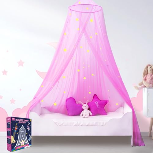 South To East Ciel de lit avec étoiles fluorescentes phosphorescentes, 230 Rose Moustiquaire lit Bebe, Enfants, Filles, Fille, Auvent de lit bébé, lit d'enfant, Cabane, lit Fille Princesse