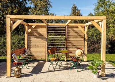 Habrita Pergola auvent Autoportant manuel 3,40 Bois Veneto 3,12 Vt3431v 3 x m VT3431V