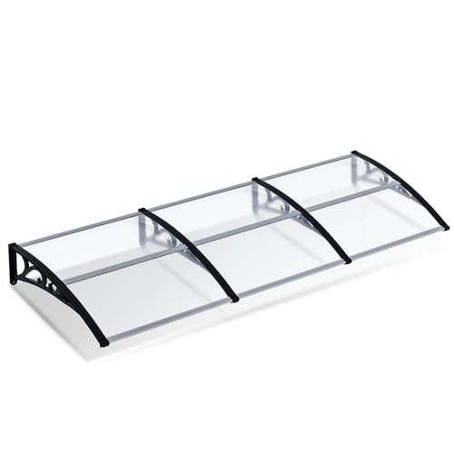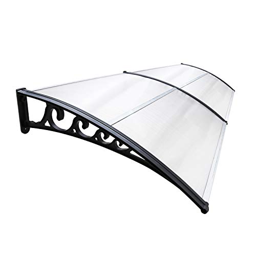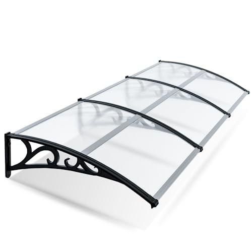 FANTASK Auvent pour Porte d'entrée - 199 x 99 cm - Toit en Aluminium et Polycarbonate - Auvent Transparent - Auvent de Porte d'entrée - Auvent de Porte d'entrée - Auvent de Porte d'entrée - Auvent de