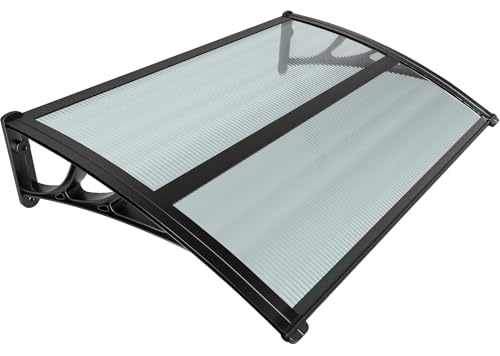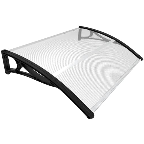 Jopassy Auvent de Porte d'Entrée 100x120 cm, Toit en Polycarbonate 5 mm avec Structure ABS, Marquise Transparente, Protection Extérieure Contre la Pluie pour Balcon