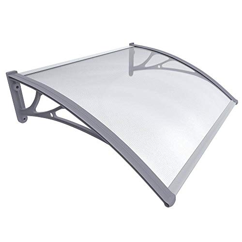 VOUNOT® Auvent de Porte d'entrée Toit Marquise en Polycarbonate Porte Résistante Toit Abri Protection Contre La Pluie et UV Gris Transparent 100 x 80 cm