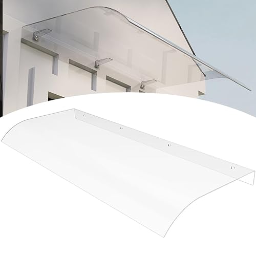 kefu01 Auvent de Porte et Fenêtres Incurvée,Auvent Marquise en Polycarbonate Transparent,Auvent de Patio Domestique en Alliage d'Aluminium,avec Support Blanc,pour Cour,Villa,Garage (80x120cm/31 x47)