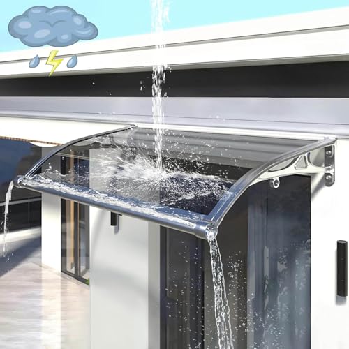 Aufun Auvent de porte d'entrée - Auvent en polycarbonate - Auvent transparent - Protection solaire - Protection contre la pluie - Protection contre les intempéries - Auvent arqué pour garage, balcon