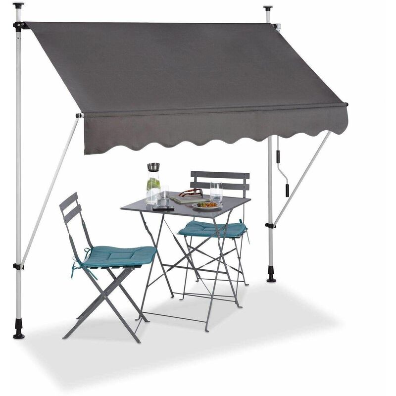 HOMEDEMO Store Balcon Rétractable, Résistant aux UV, Auvent Manuel Rétractable, Store Banne Hauteur et Inclinaison Réglable, pour Jardin, Patio Gris Foncé, 250x120-150cm