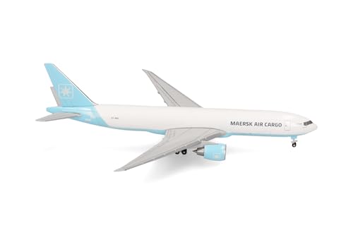 herpa Avion Miniature Maersk Air Cargo Boeing 777F - OY-Mac Maersk Swan, à l’échelle 1:500, Objet de Collection, modèle sans Socle, métal