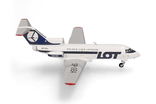 herpa Modèle réduit Avion LOT Polish Airlines Yakovlev Yak-40, Miniature à l'échelle 1:200, pièce de Collection, modèle sans Socle, métal