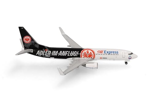 herpa Modèle réduit Avion Sun Express Boeing 737-800 "Eintracht Frankfurt - SGE Express - Adler im Anflug - TC-SPM, Miniature à l'échelle 1:500, pièce de Collection, modèle sans Socle, métal