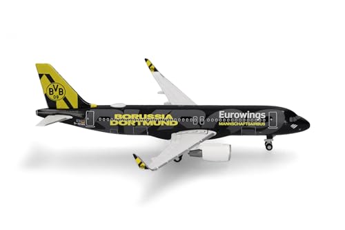 Herpa Modèle réduit Avion Eurowings Airbus A320 BVB Mannschaftsairbus (2025), Miniature à l’échelle 1:500, pièce de Collection, modèle d’Avion sans Socle, métal