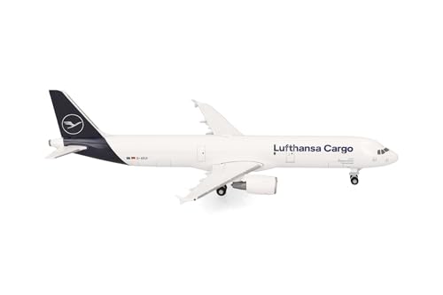 Herpa Modèle réduit Avion Lufthansa Cargo Airbus A321P2F, Miniature à l’échelle 1:500, pièce de Collection, modèle d’Avion sans Socle, métal