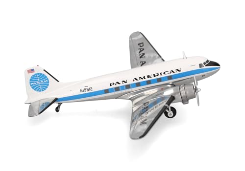 Herpa Avion Pan American World Airways Douglas DC-3, Miniature à l’échelle 1:200, pièce de Collection, avec Socle,métal