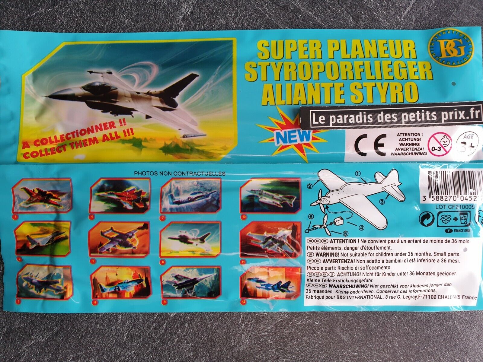 PARENCE.- Avion de Lancer en Polystyrène - Planeur Manuel