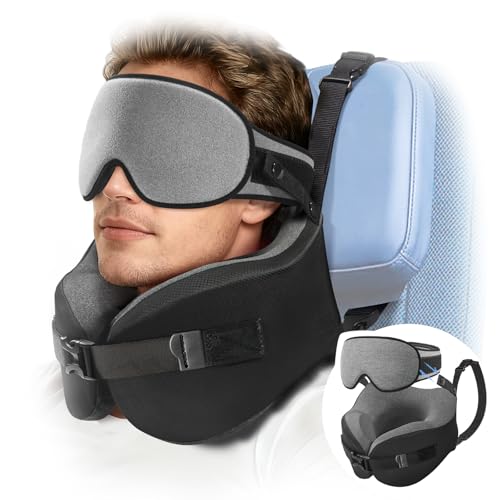 Sionhiuo Sangle de Soutien pour Le Cou, Avion, Masques pour Les Yeux, Sangle d'appuie-tête, Coussin de Voyage, Bandeau d'appui-tête réglable pour Dormir, pour Les Vols Longs