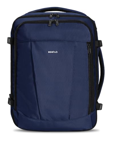 ECOHUB Bagages Cabine 40x30x20, Sac a Dos Voyage Ryanair sous Siège 13 Poches, Sac a Dos Cabine Avion pour Vueling, Petite Valise Cabine Femme Homme Recyclable Pet Ecologique 24L Loisir