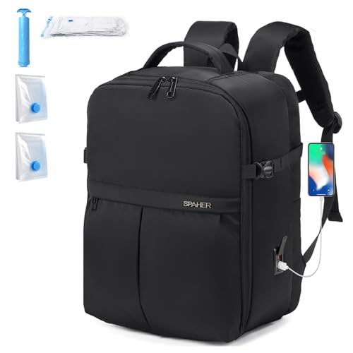 SPAHER 25L Sac à Dos Voyage Cabine Avion 40x30x20 Wizzair Vueling Bagage Cabine Sac à Dos Ordinateur Portable 15,6 Pouces Imperméable avec Port de Charge USB et 2 Sac sous Vide Bagage à Main