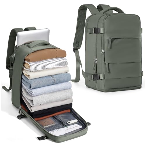 BJLFS Sac à Dos de Voyage Femme Cabine Avion 40x30x20 Ryanair Wizzair Bagage Cabine 40x30x20 Vueling Bagage à Main Homme Sac à Dos pour Ordinateur Portable Vert