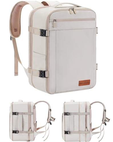 MOCOCITO Sac à Dos de Voyage Avion, Bagage Cabine de 40x30x20+5cm,24L Grande Capacité, 40x30x20cm Parfait Pour Transavia/Vueling/Wizz Air, Compartment Pour 15.6'' Ordinateur Portable - Beige Crème