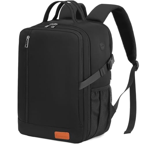 SUCIKORIO Cuir Sac à Dos de Voyage 40x30x15cm Air France British Airways Wizzair Vueling Bagage Avion Cabine Sous le Siege, Imperméable Sac à Dos Ordinateur Portable 15,6 Pouces Avec Interface USB