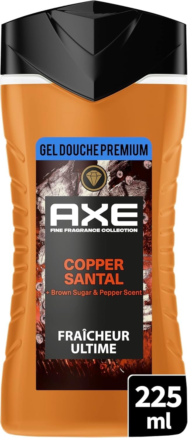 AXE - Gel Douche - Collection Prestige - Copper Santal -12h de fraîcheur - Parfum infusé aux huiles essentielles de bois de santal, miel et poivre - Agents hydratants 100% d’origine végétale - 225ml