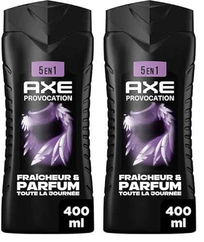 AXE - Gel Douche Homme 5en1 - Provocation - 24h Hydratant - 87% d'Ingrédients d'origine naturelle - Parfum noix de coco et poivre noir - 400ml (Lot de 2)