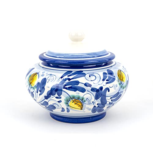 Boîte à biscuits en céramique sicilienne de Caltagirone décorée à la main décoration '600 BLEU
