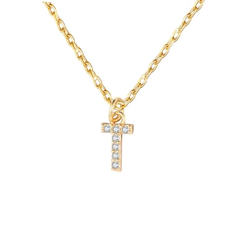 Collier pour Femme Filles Initiale Lettre de alphabet Pendentif de A B C D E F G H I J K L M N O P Q R S T U V W X Y Z Cadeau pour Femme Fille Cadeau pour Noël, Anniversaire, Saint-Valentin (T)