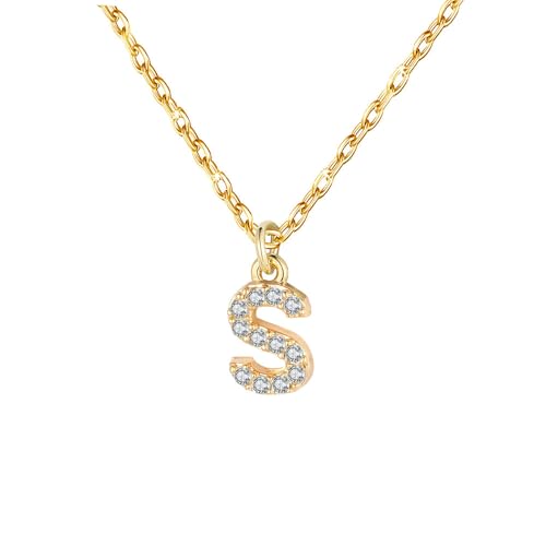 Collier pour Femme Filles Initiale Lettre de alphabet Pendentif de A B C D E F G H I J K L M N O P Q R S T U V W X Y Z Cadeau pour Femme Fille Cadeau pour Noël, Anniversaire, Saint-Valentin (S)